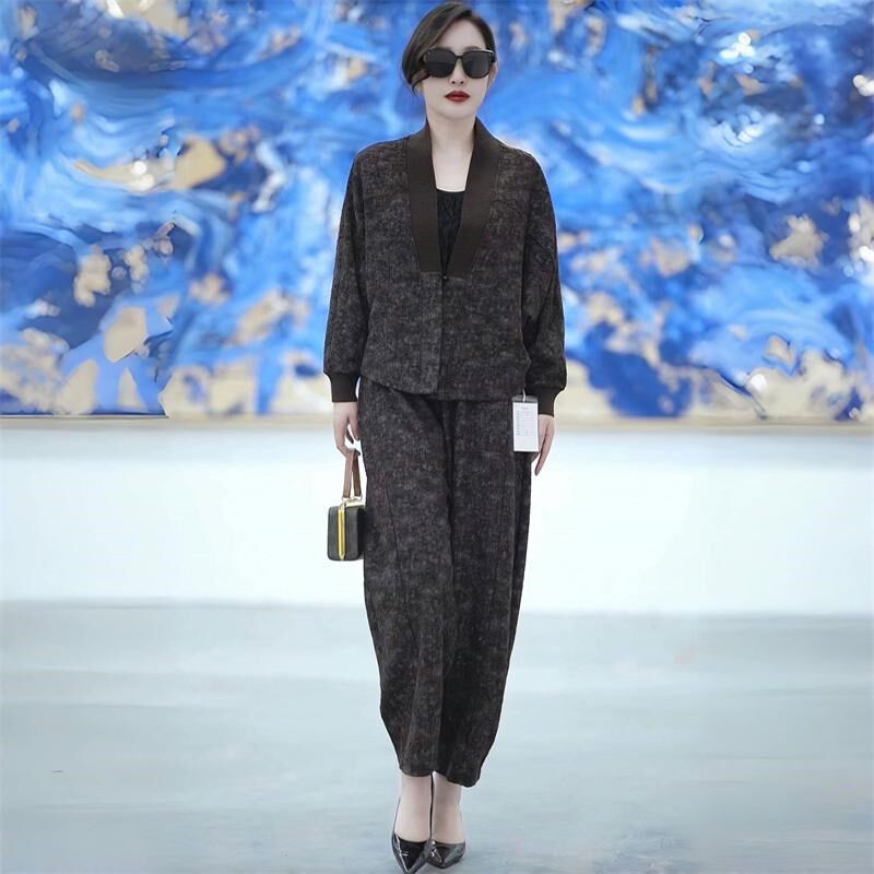 上衣 洋气开衫 复古时尚 女 子大码 两件套装 小脚萝卜裤 高端2025春季