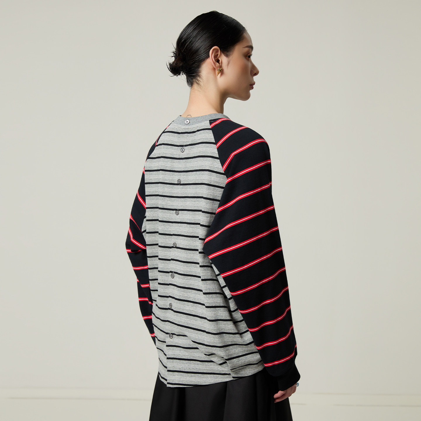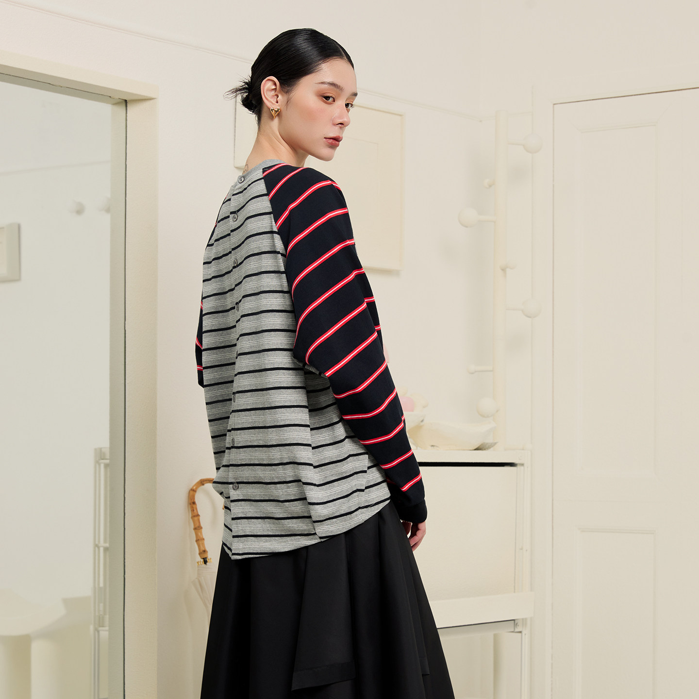 设计感 ALL BEINGS2026SS春季 新品 T恤 解构门襟条纹拼色印花长袖