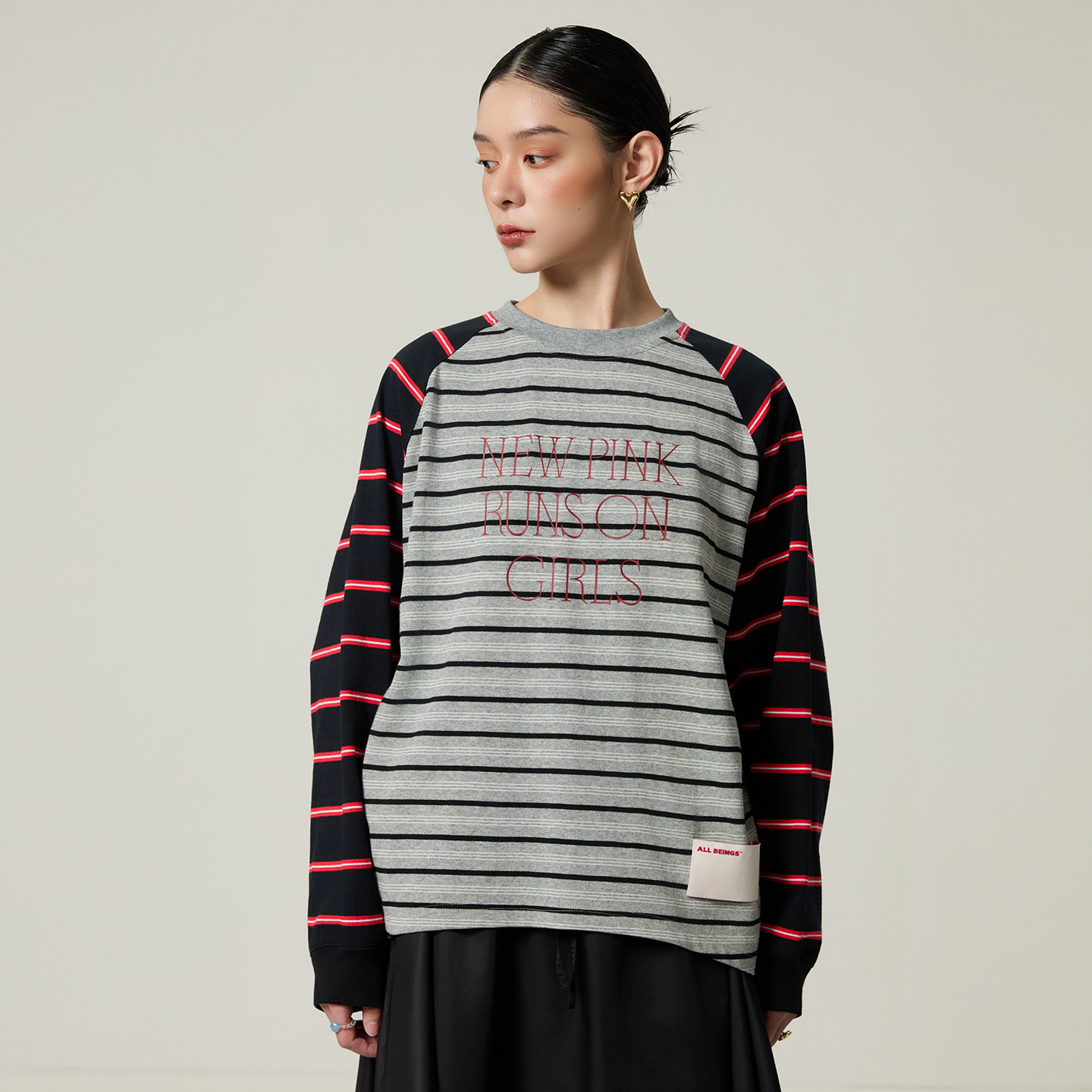 设计感 ALL BEINGS2026SS春季 新品 T恤 解构门襟条纹拼色印花长袖由