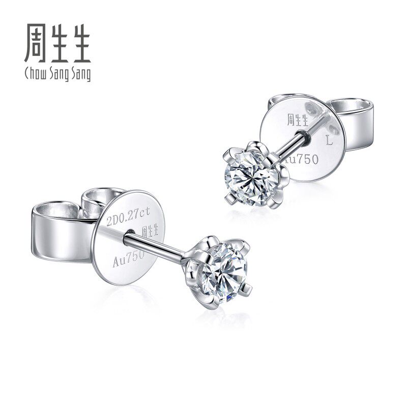 周生生18K白色黄金钻石耳饰k金钻石耳钉首饰生日礼物87348E由