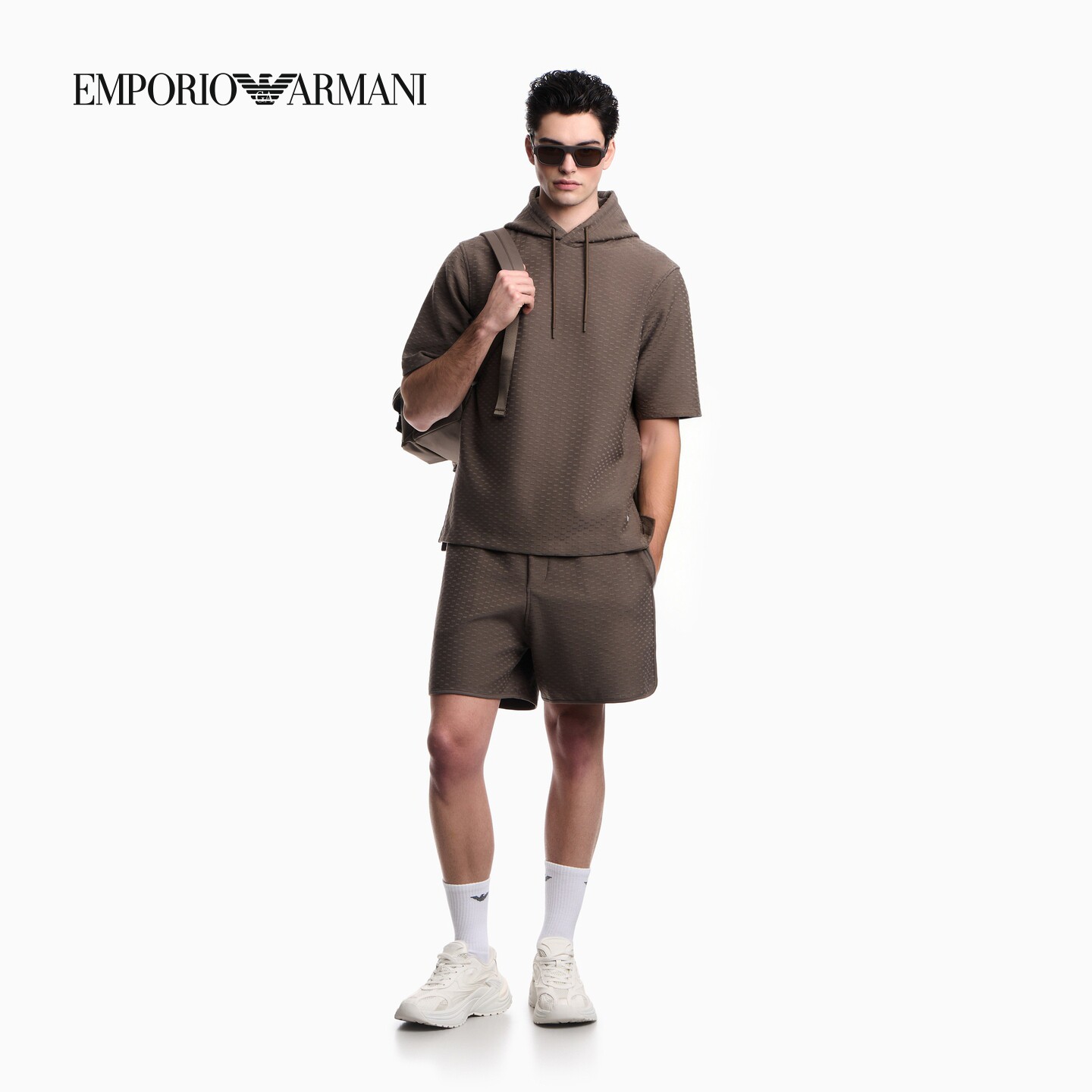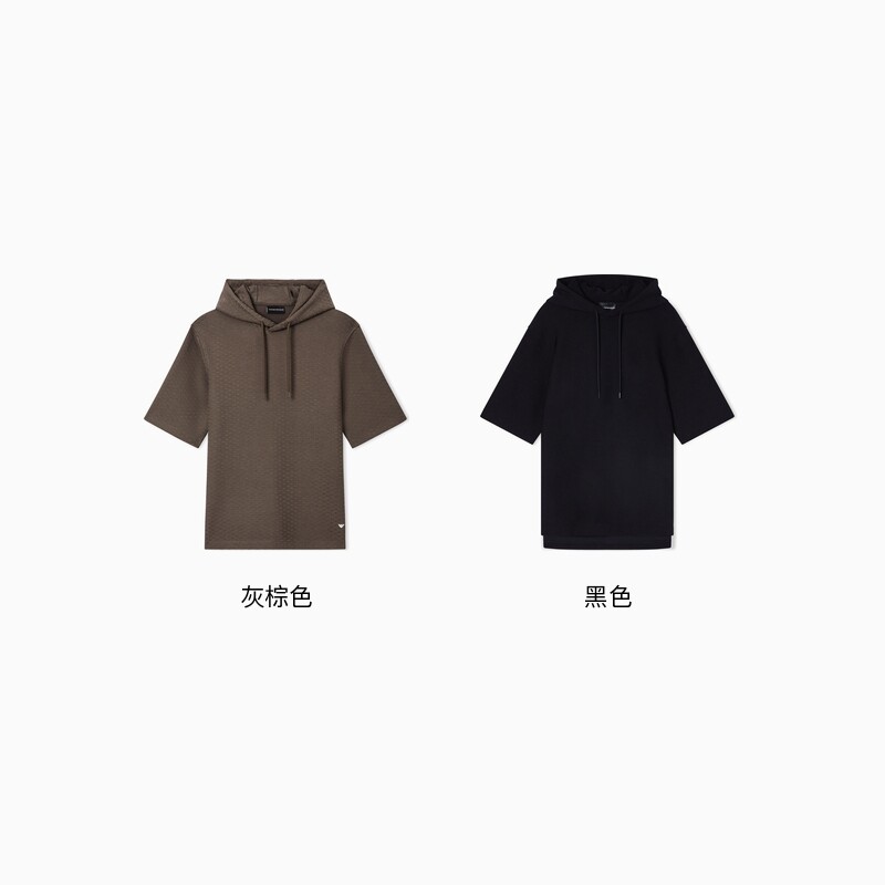 新款 EMPORIO ARMANI 阿玛尼夏季 卫衣 男连帽套头合身纯色抗皱短袖由