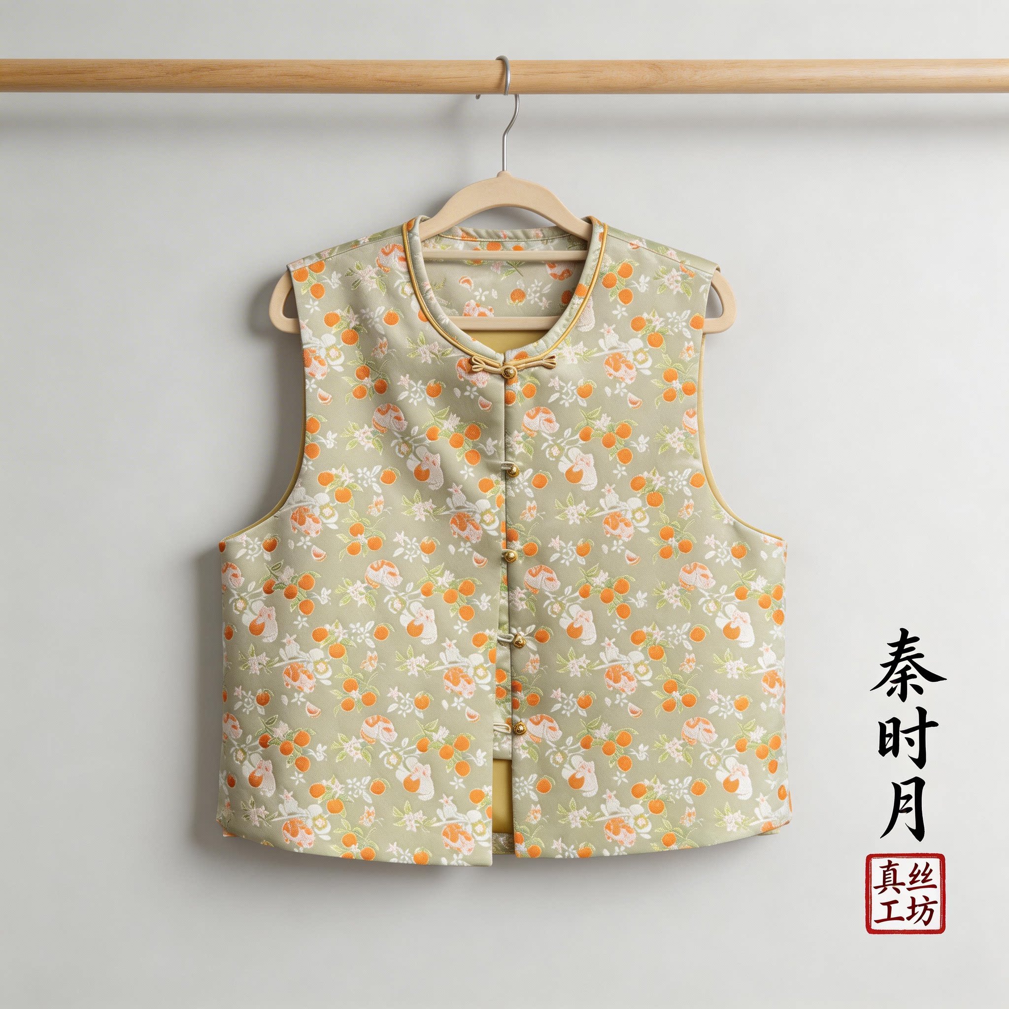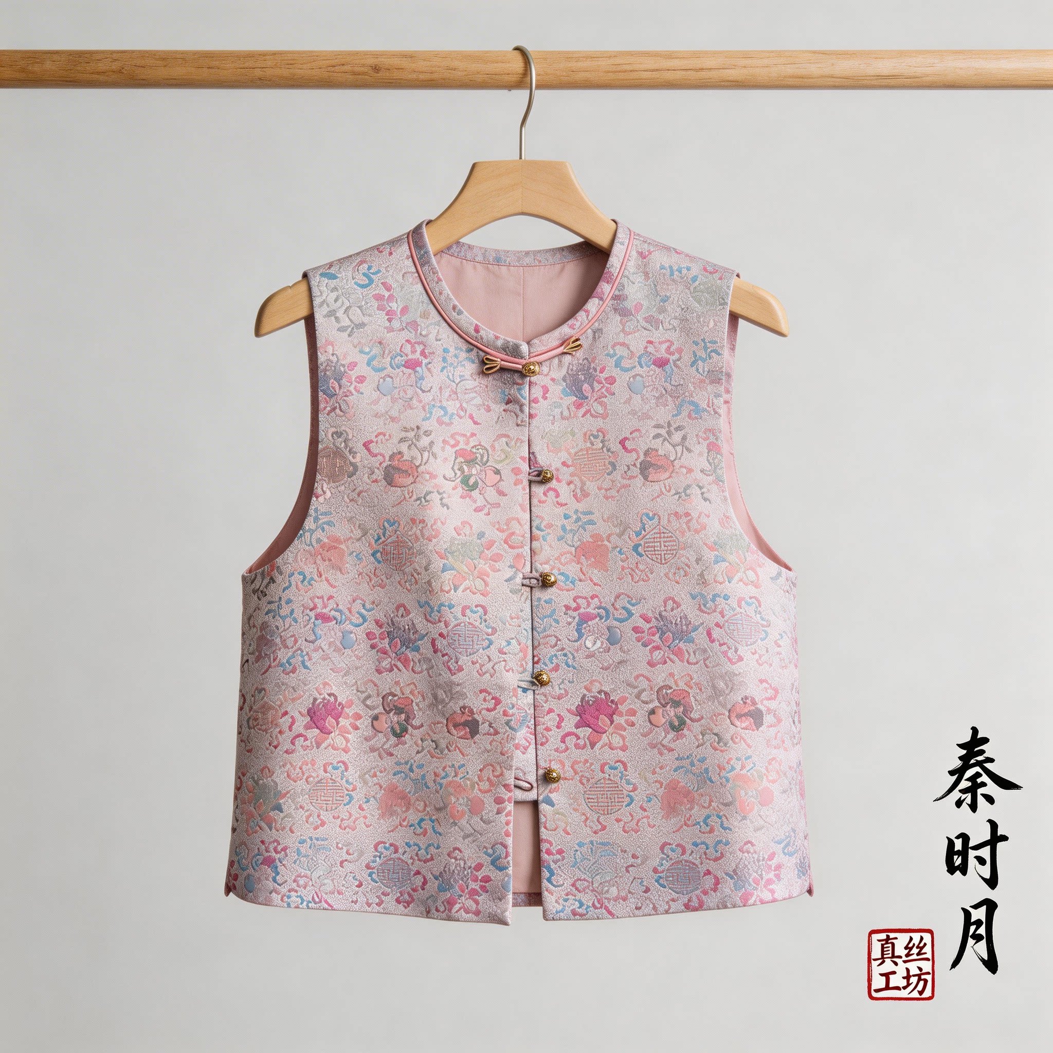 100%桑蚕丝宋锦香云纱蜀锦马夹真丝上衣时尚 四季 款 对襟马甲由