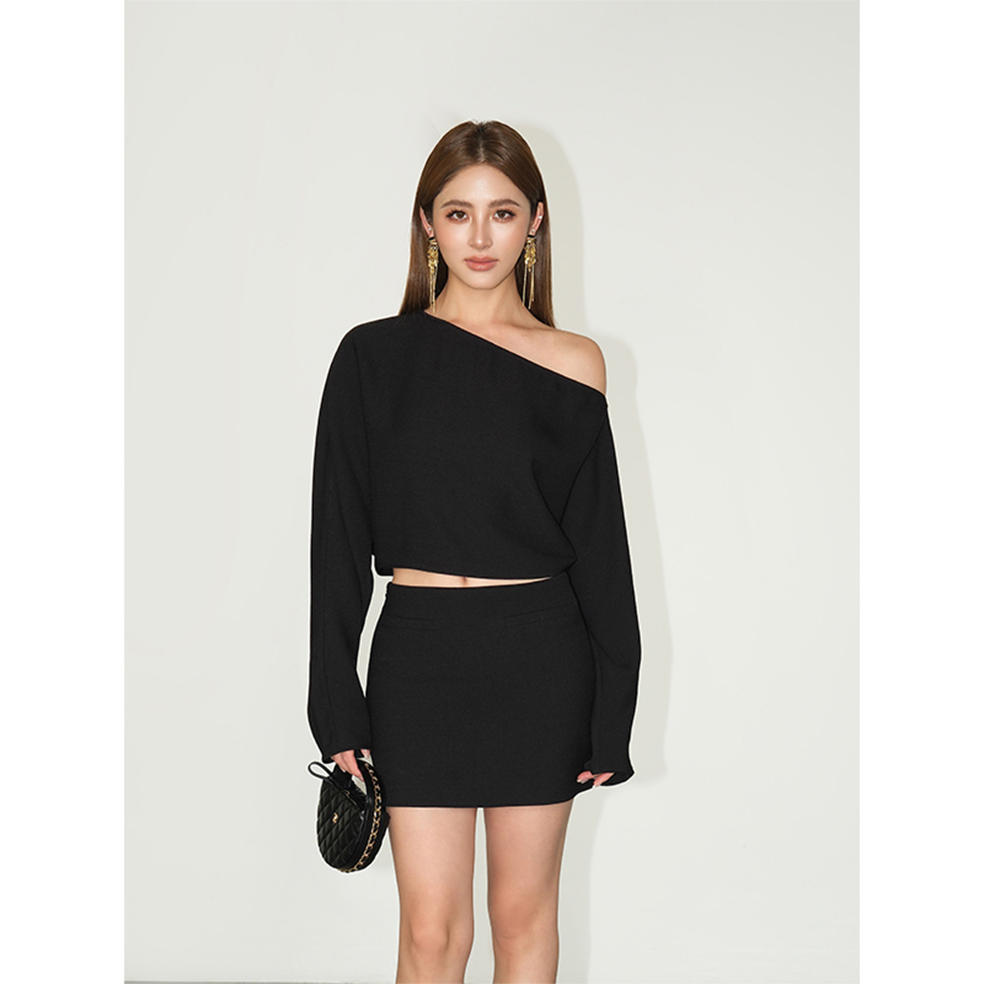 上衣女a字包臀短裙套装 NEVA 短款 优雅一字领蝙蝠袖 霓虹都会由