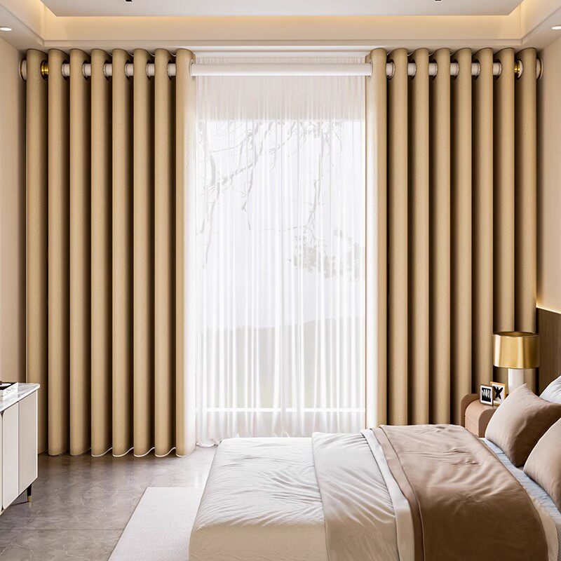 窗帘遮光2026新款 一整套罗马杆飘窗小窗户布 卧室高级感免打孔安装
