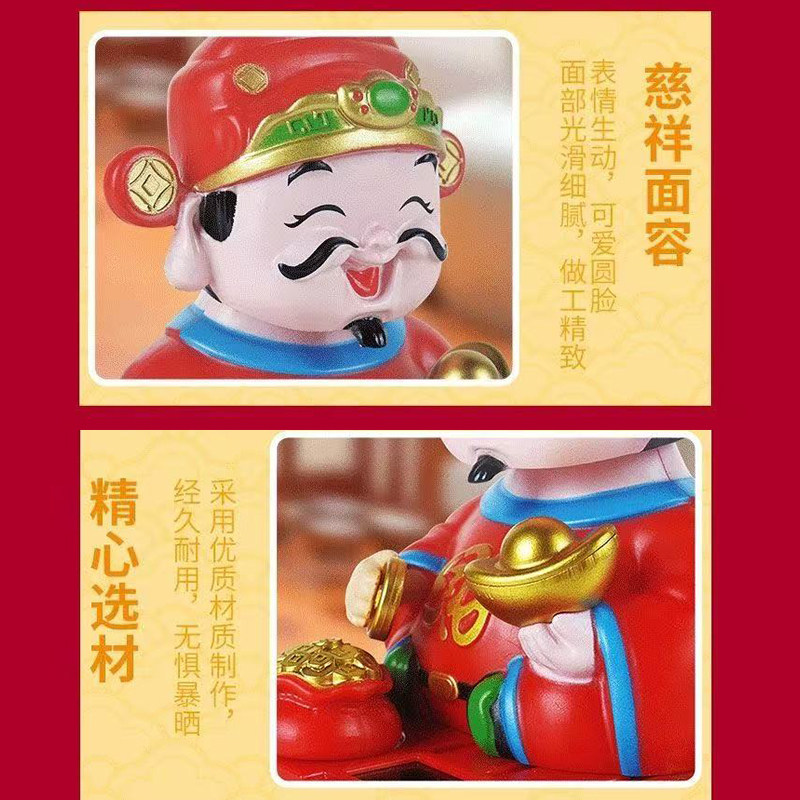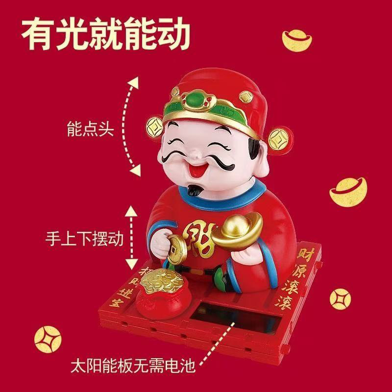 财神爷太阳能自动点头招手摇头摆件汽车中控台饰品车载创意招财由