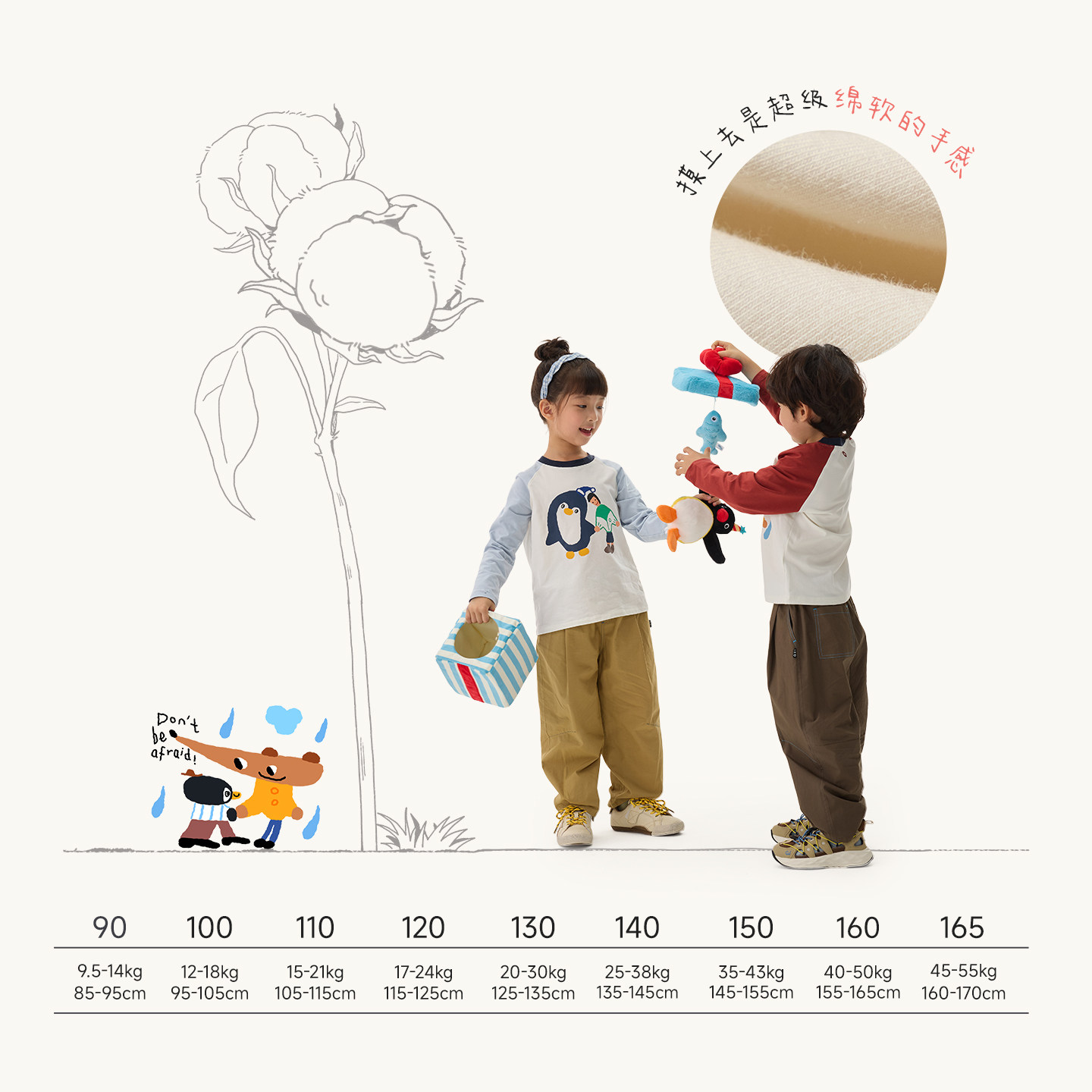 上衣打底衫 T恤男女童60支棉撞色圆领长袖 Q21久久棉涂鸦儿童长袖由