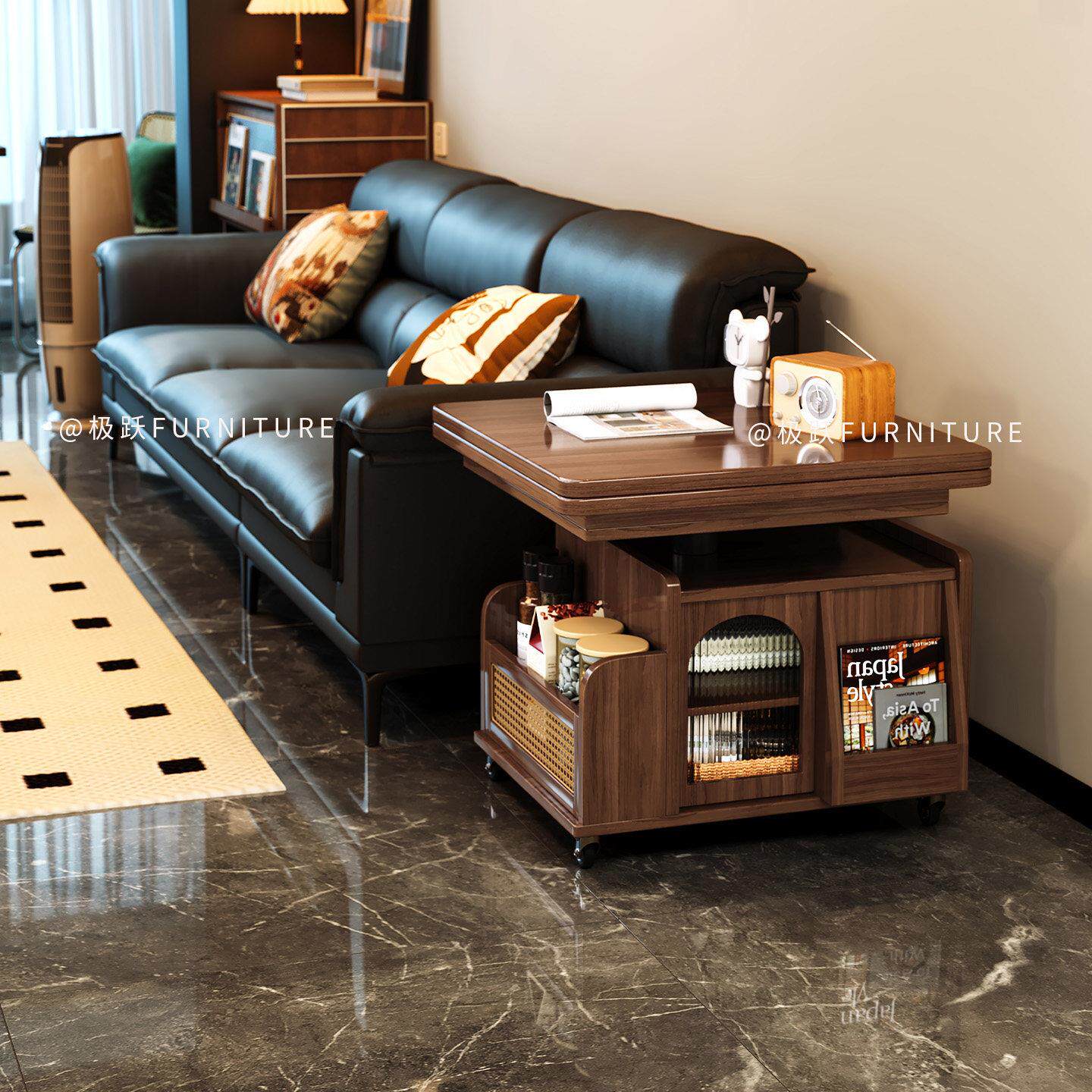 为您提供商品实木茶几可移动升降摺叠小推车客厅小户型多功能餐桌两用沙发边几的详细介绍,