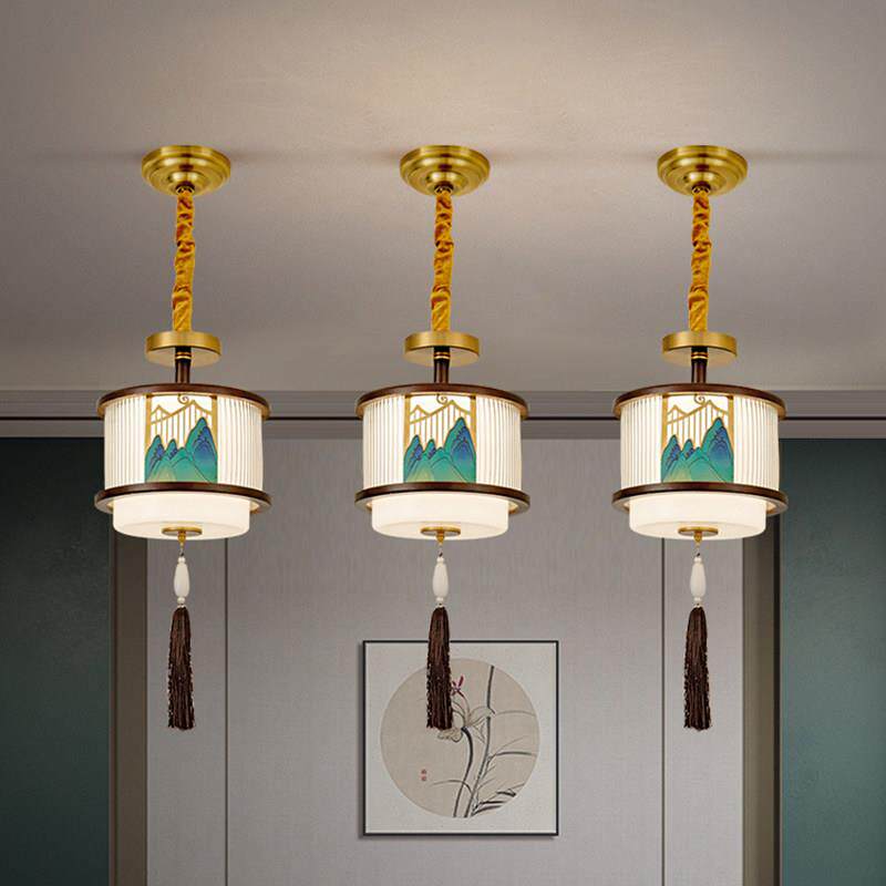 复古釉面印花陶瓷吊灯中古风入户玄关过道卧室床头餐厅吧台灯 日式