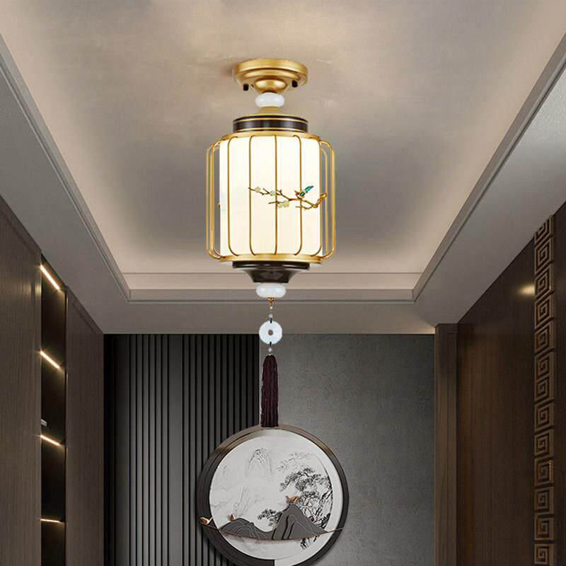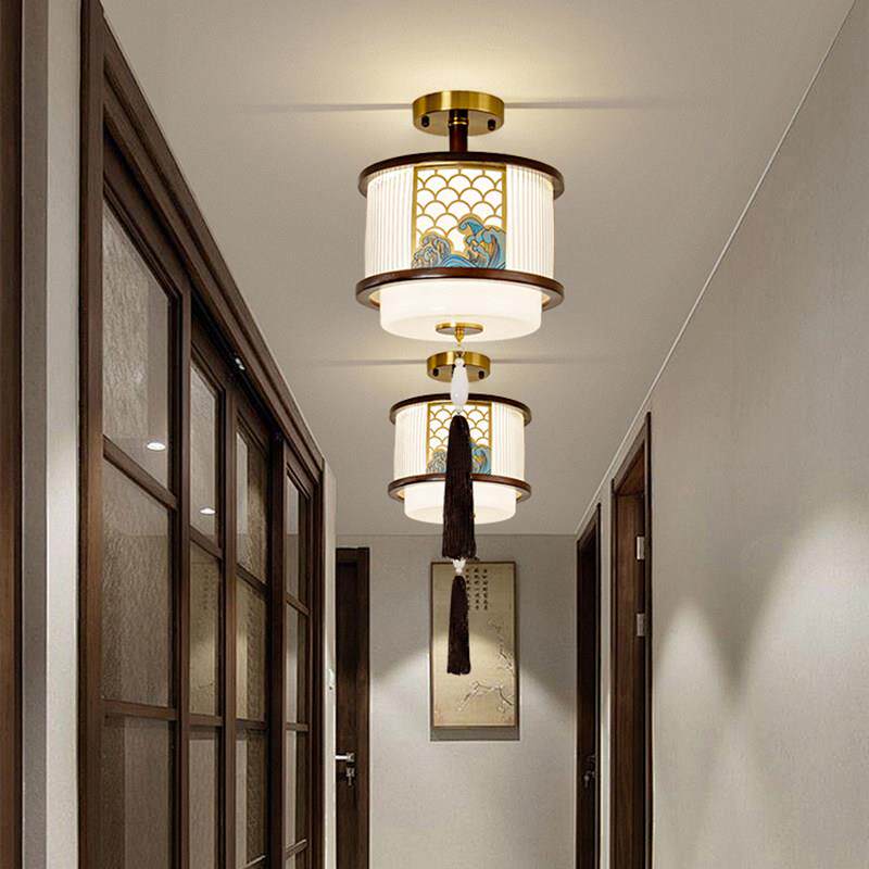 新中式 全铜阳台灯入户门厅走廊吊灯 实木走道灯小吸顶灯新款
