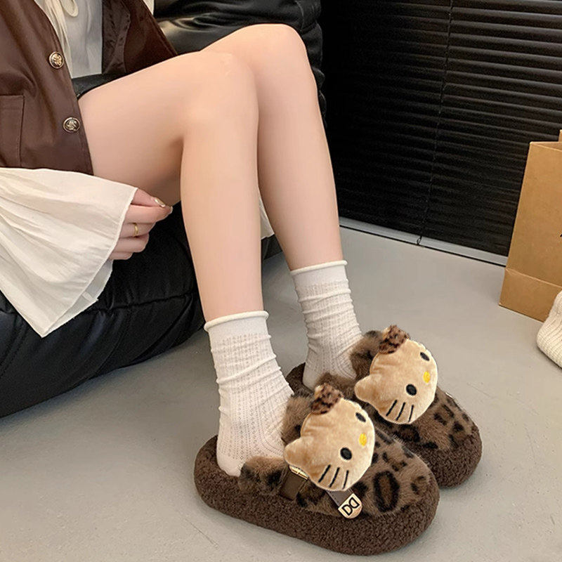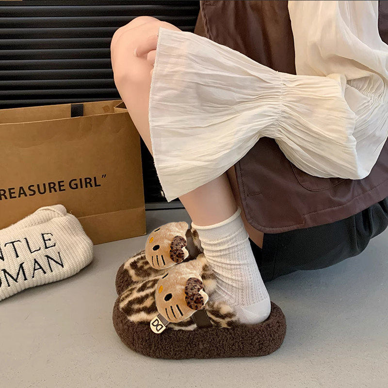 为您提供商品韩版 女冬外穿厚底保暖包头kitty棉拖 高级感可爱豹纹猫咪毛毛拖鞋的详细介绍,