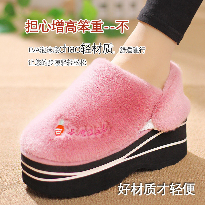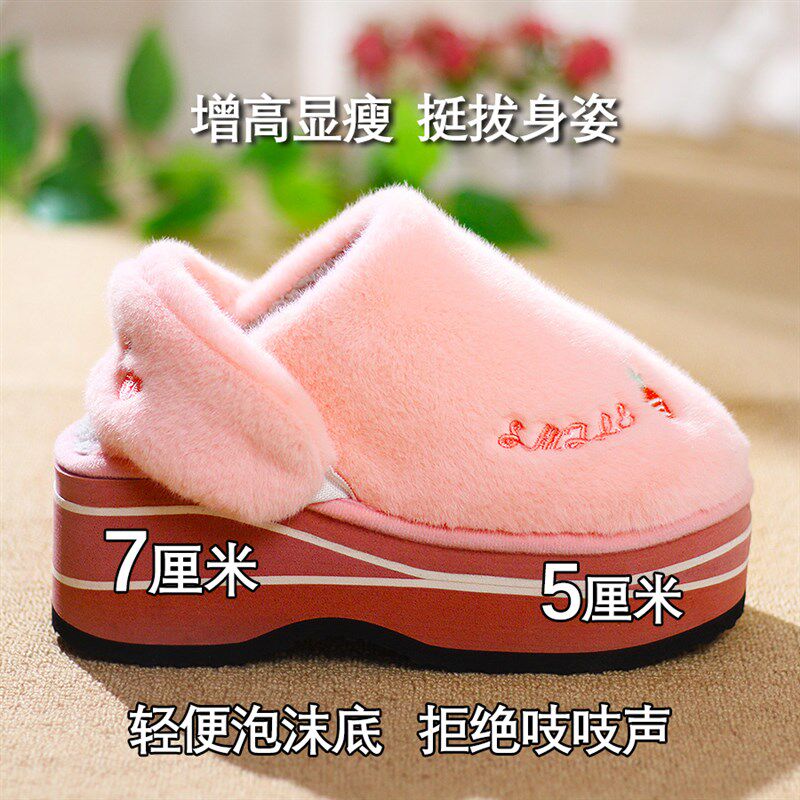 包跟室内家居保暖小个子外穿增高加厚底手工棉鞋 女冬季 高跟棉拖鞋由