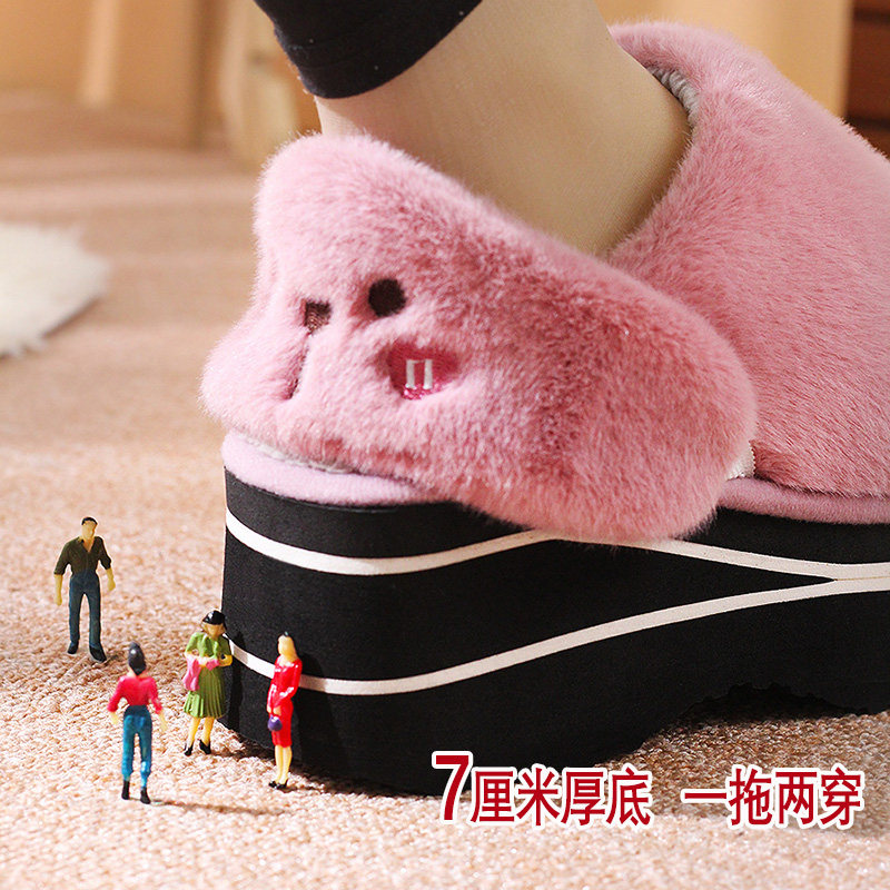 外穿防滑厚底居家保暖棉鞋 假日 女秋冬季 可爱米菲兔包跟加绒棉拖鞋