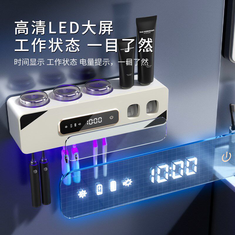 智能电动牙刷消毒器紫外线杀菌烘干一体机牙膏牙杯置物架子壁挂式