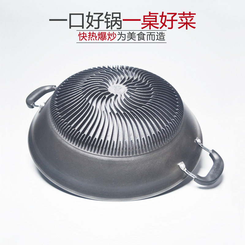 为您提供商品富贵宝节能炒锅家用无涂层翅片双耳加厚铸铁燃气灶适用炒菜大铁锅的详细介绍,