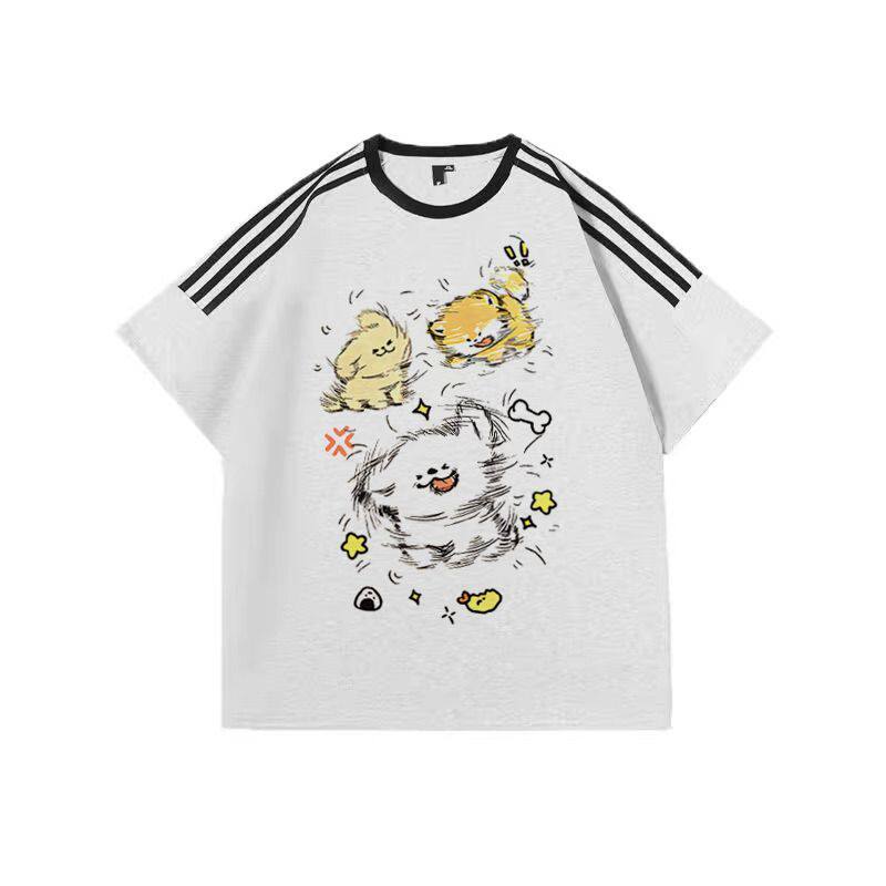 卡通小狗印花短袖 纯棉潮牌设计感上衣趣味图案 T恤男女撞色插肩袖