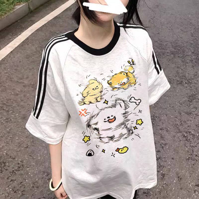 为您提供商品卡通小狗印花短袖 纯棉潮牌设计感上衣趣味图案 T恤男女撞色插肩袖的详细介绍,