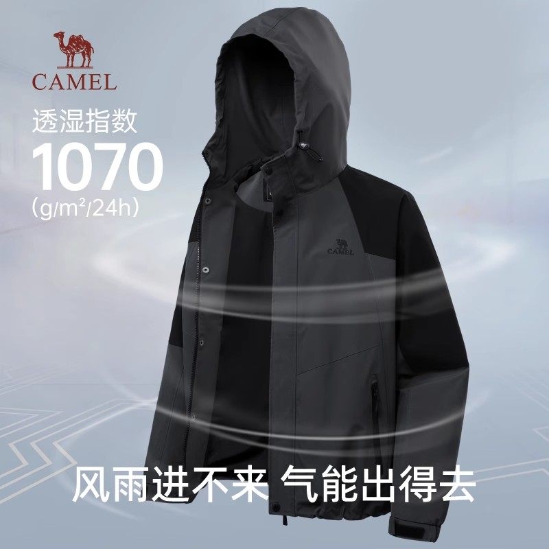骆驼女装 外套小个子夹克户外三合一防风防水登山服 三防冲锋衣短款