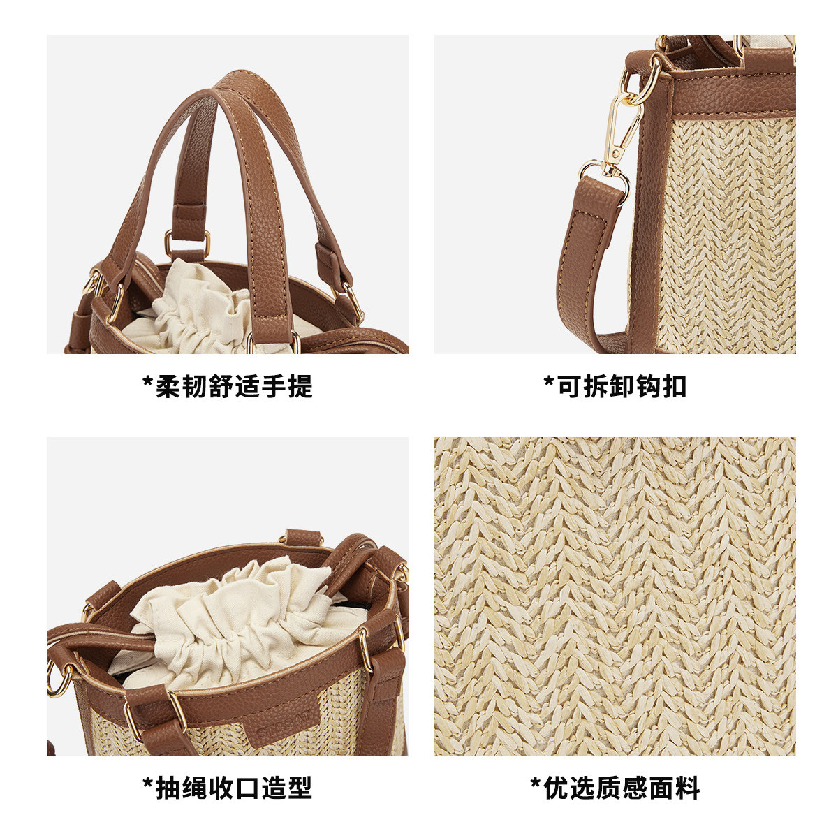 百搭手提编织水桶包夏季 出游度假单肩斜挎小包 时尚 星期六女包爆款由