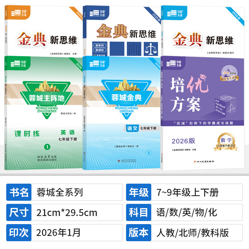 为您提供商品初中同步练习册学程先锋 2026蓉城主阵地英语蓉城金典语文培优方案金典新思维数学物理化学七八九年级上下册中考总复习四川成都专版的详细介绍,