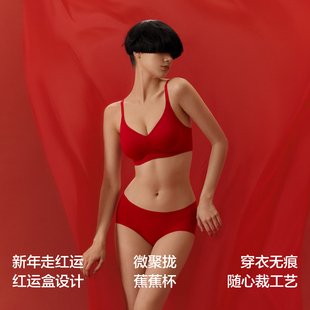 礼盒 蕉内红色计划5系文胸女小胸聚拢送礼马年结婚本命年内衣套装由