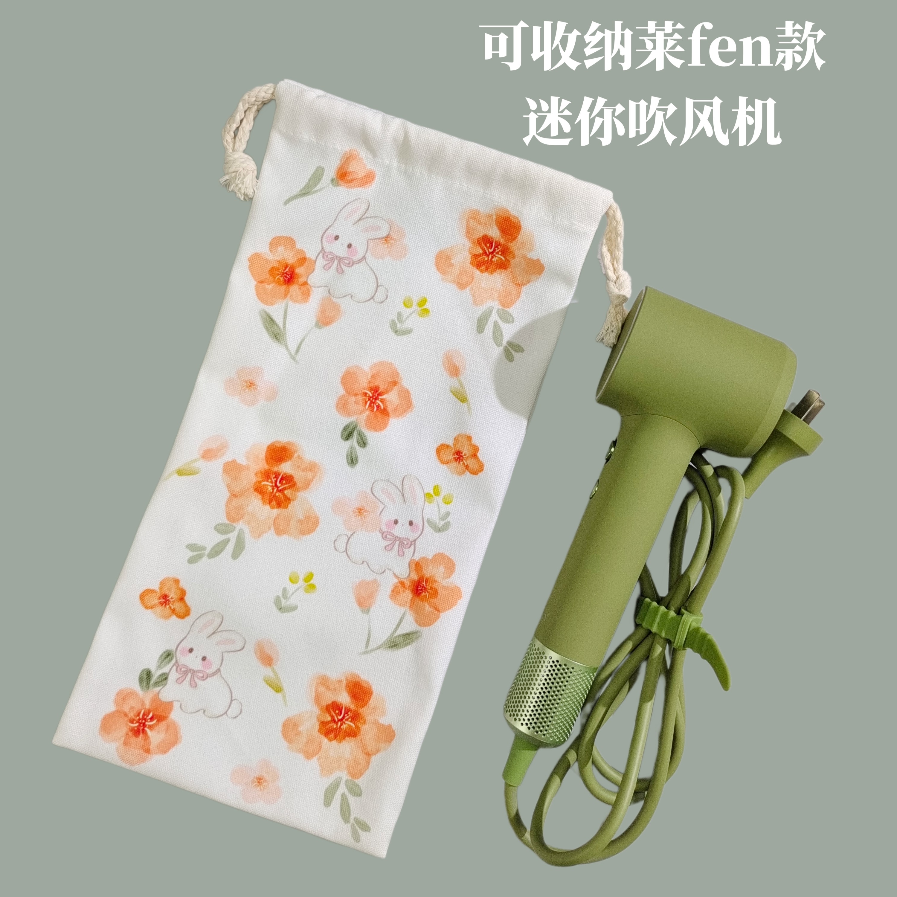 森林系小碎花束口化妆包首饰随身便携抽绳布袋直发梳卷发棒收纳袋
