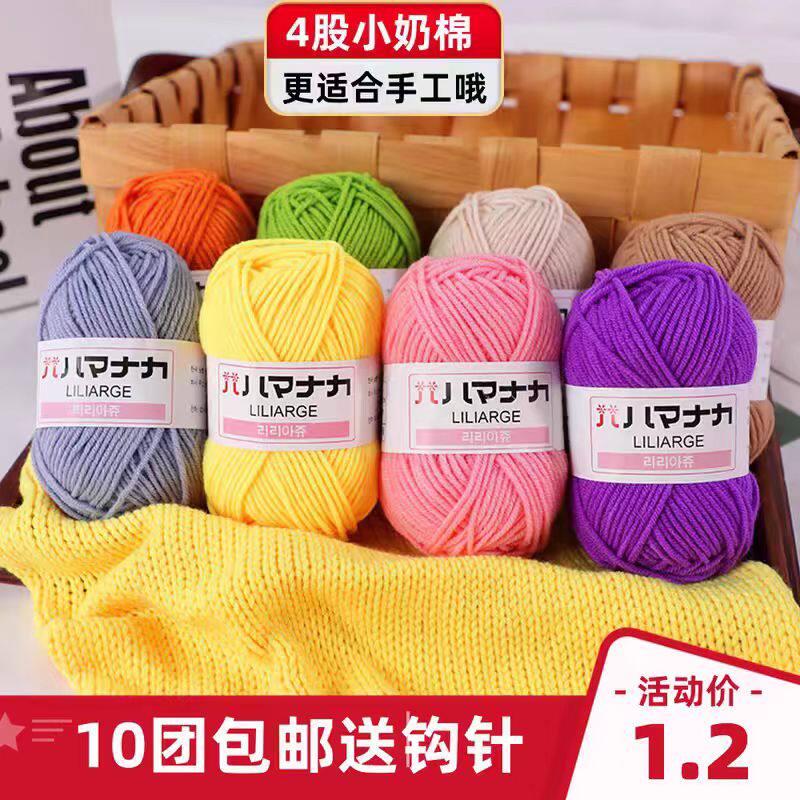 麦线线四股牛奶棉4股精梳线团宝宝毛线手工diy编织毛衣钩玩偶花束