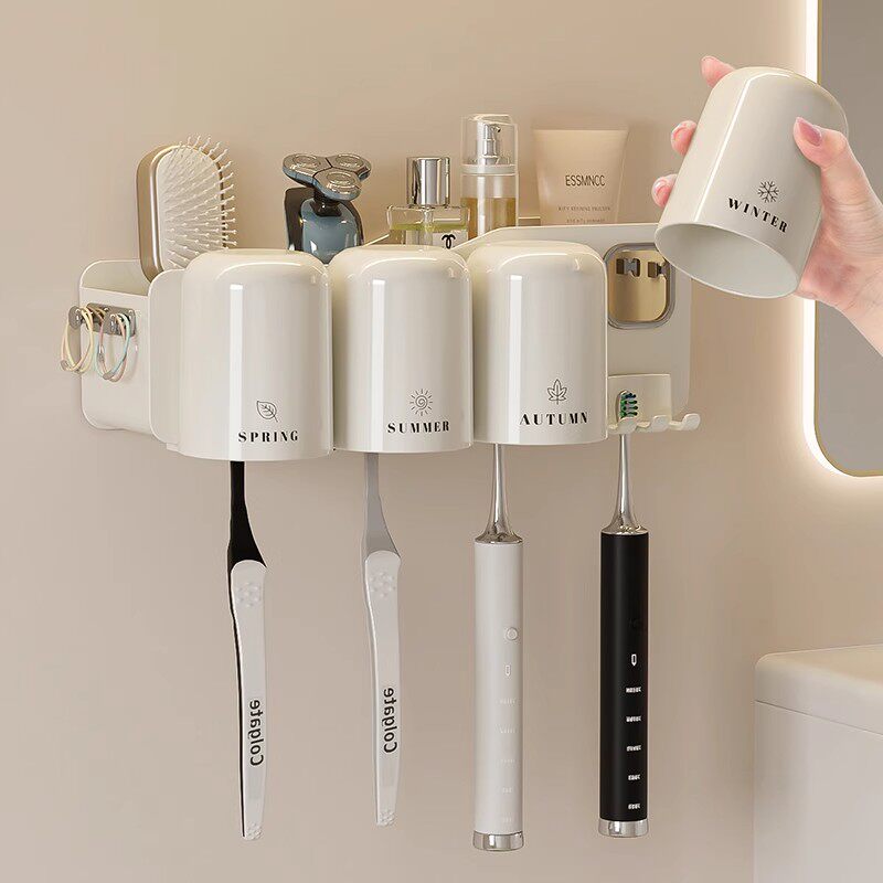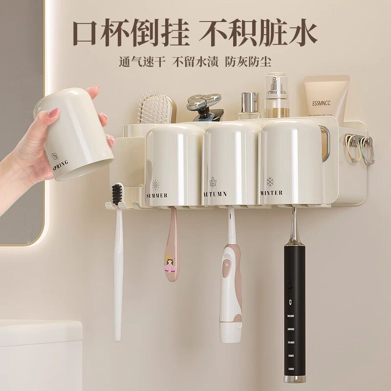 刷牙杯漱口杯收纳架 德国浴室牙刷置物架卫生间奶油风免打孔壁挂式