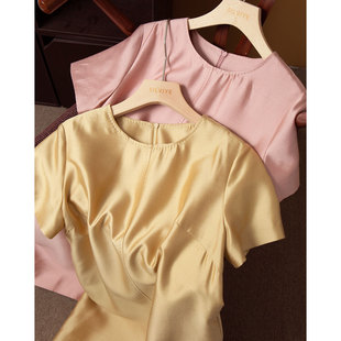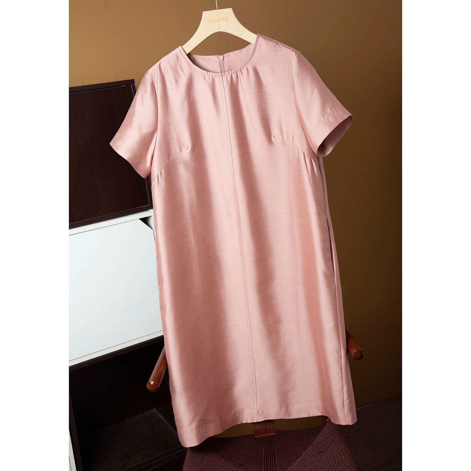 为您提供商品丝艺 连衣裙 高奢流光感重磅圆领宽松直筒真丝羊毛锻面桑蚕丝短袖的详细介绍,