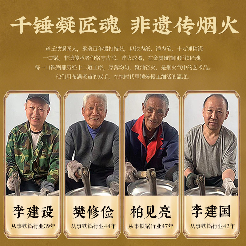 炒锅家用不粘锅无涂层燃气灶适用 章丘炒菜锅传统铁锅官方旗舰老式