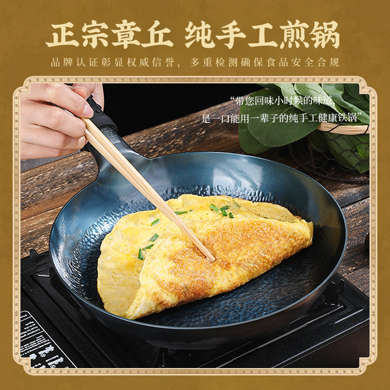 为您提供商品章丘平底锅小铁锅烙饼煎饼锅不粘锅煎蛋锅家用无涂层聚油牛排煎锅的详细介绍,