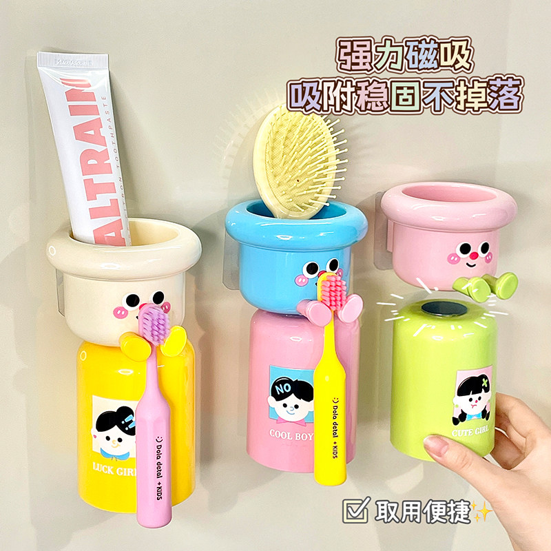 磁吸式 牙杯漱口杯刷牙杯架 电动牙刷置物架卫生间免打孔壁挂墙式由