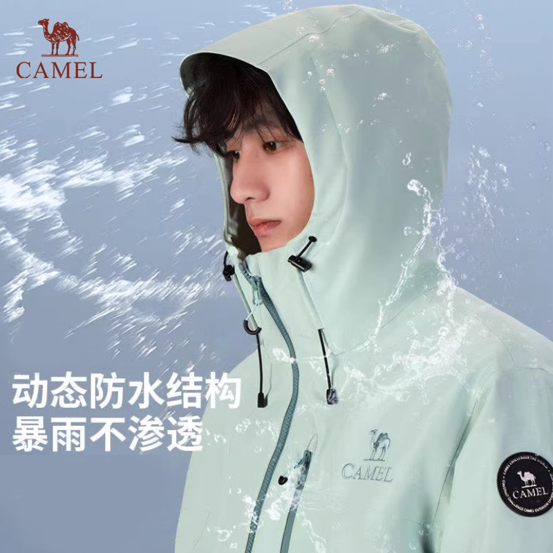 骆驼女装 外套小个子夹克户外三合一防风防水登山服 三防冲锋衣短款