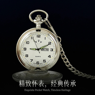 双日历怀表带星期男款 可放照片定制初中生电子机械 学生复古女款由