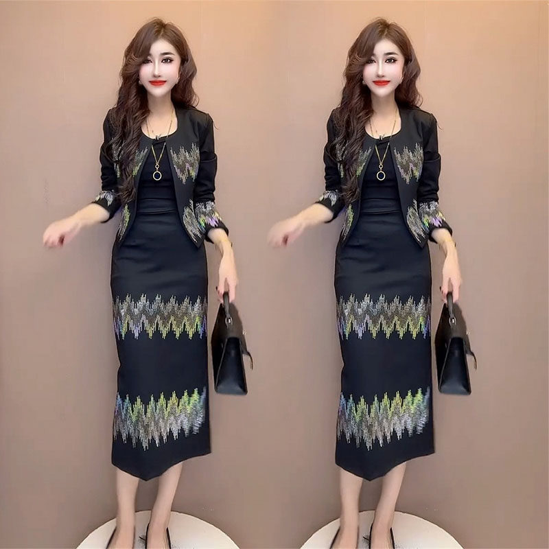 女2026秋冬洋气重工烫钻显瘦开衫 外套半身裙两件套潮 套装 欧货时尚由