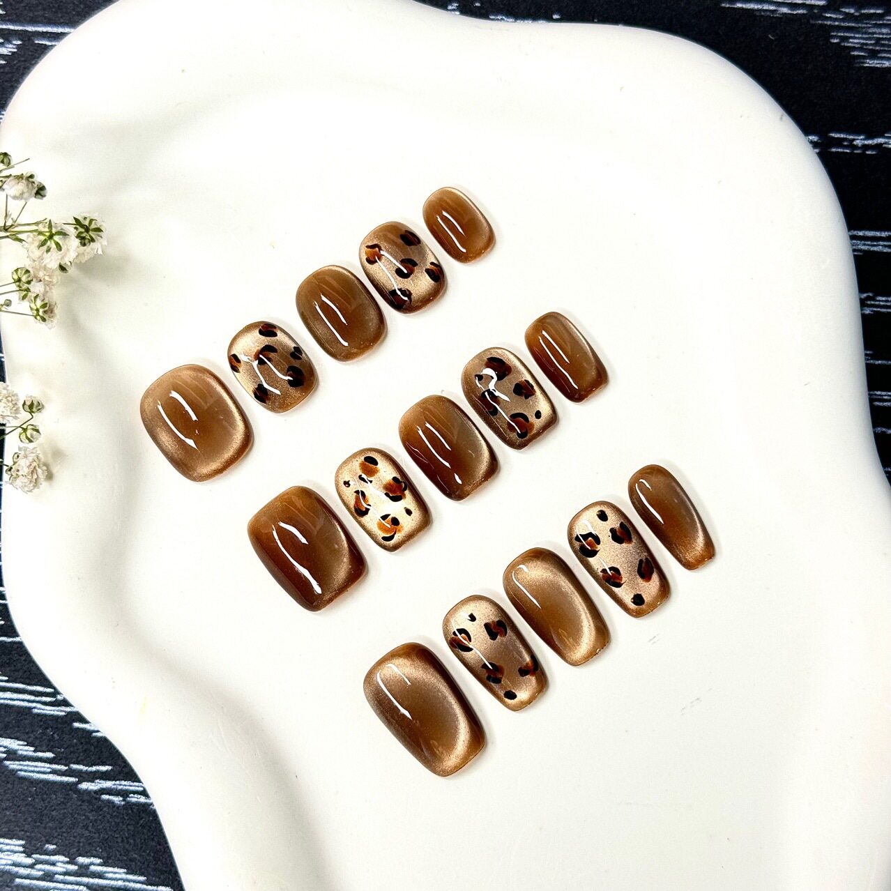 豹纹猫眼穿戴甲高级感纯欲显白爆闪甜酷辣妹美甲日常可拆卸法式