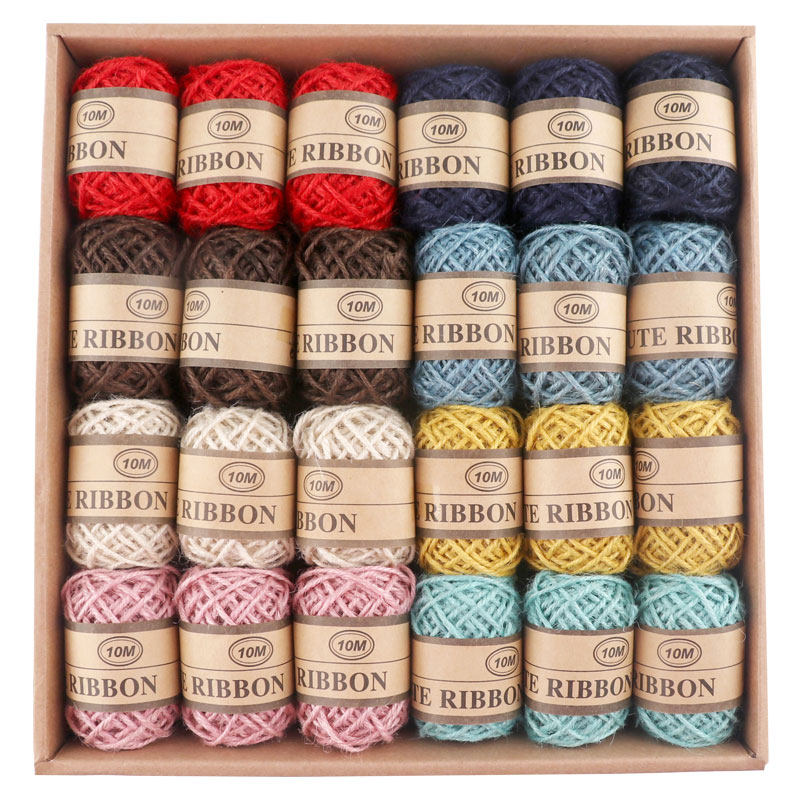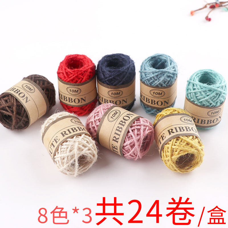 饰绳子粗儿童手工编织绳 照片8色24卷 diy复古麻线绳装 彩色麻绳
