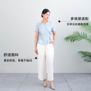 科尚新中式 套装 女2026夏新款 洋气气质两件套减龄上衣 国风V领短袖由