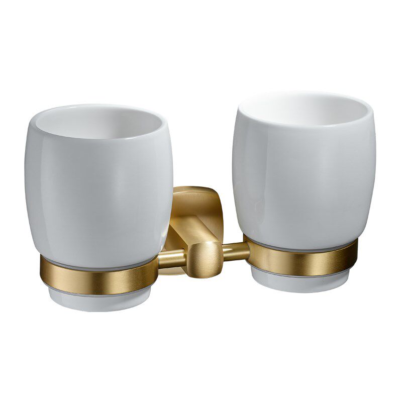 牙刷架漱口杯卫生间免打孔L牙杯架陶瓷杯双杯置物 全铜简约壁挂式