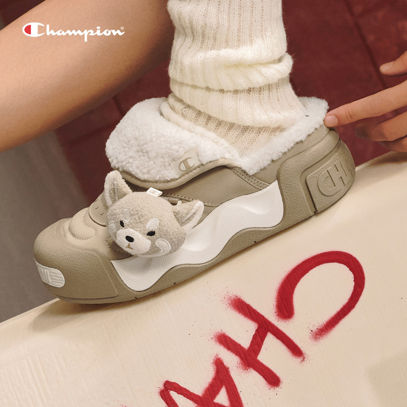 新款 萌趣可爱保暖棉半拖 膨膨云绒拖女冬季 Champion冠军拖鞋