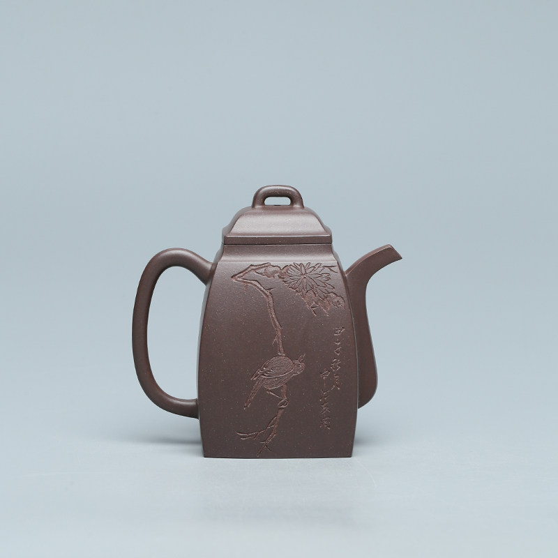 铁画轩全手工超高温天青紫泥紫砂壶200cc 稀雀·汉方