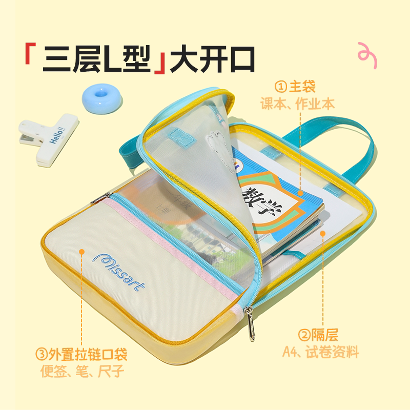 ⭐小红书推荐⭐Missart 手提拎书L型3层科目分类袋补习袋小学生初中试卷资料补课收纳包整理透明文件袋网纱拉链学科作业书袋,所属文件袋/资料袋/试卷收纳袋分类,由淘宝网挑选推荐!小红书抖音网红同款!哪里有卖Missart 手提拎书L型3层科目分类袋补习袋小学生初中试卷资料补课收纳包整理透明文件袋网纱拉链学科作业书袋和多少钱质量怎么样✅。