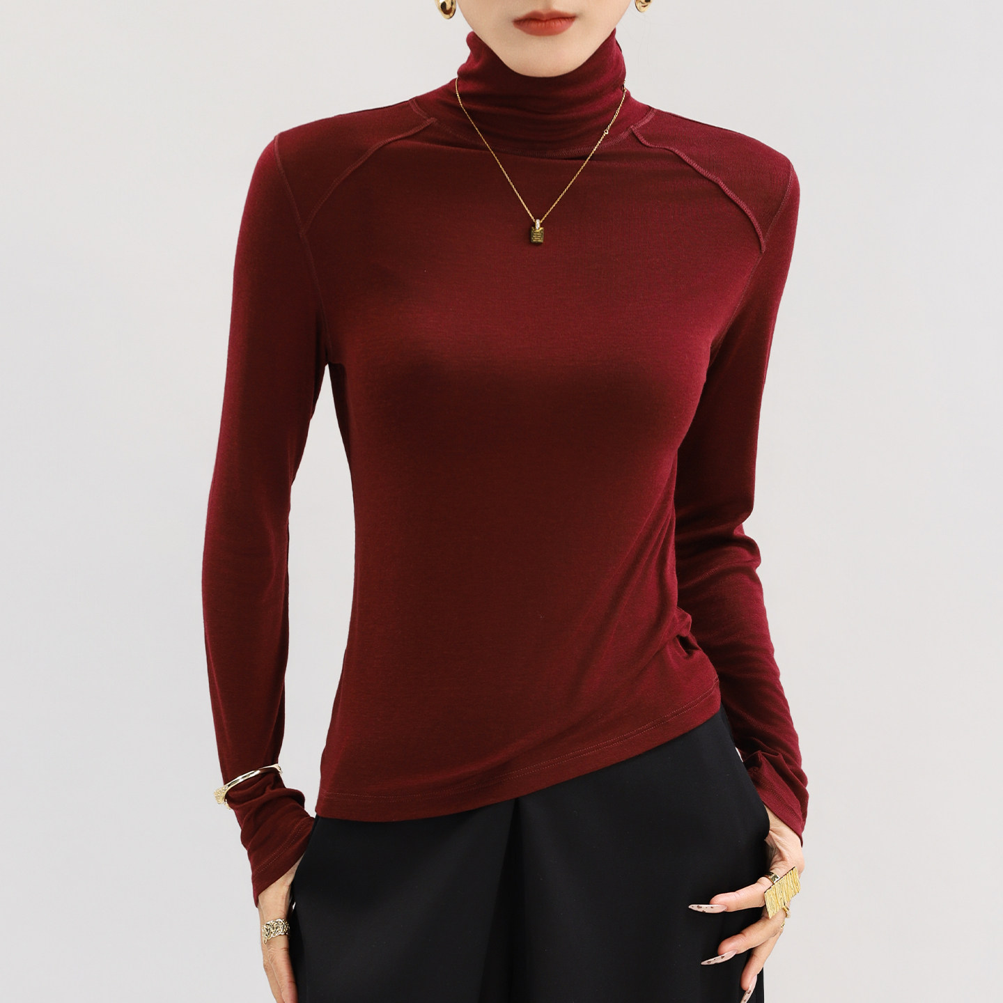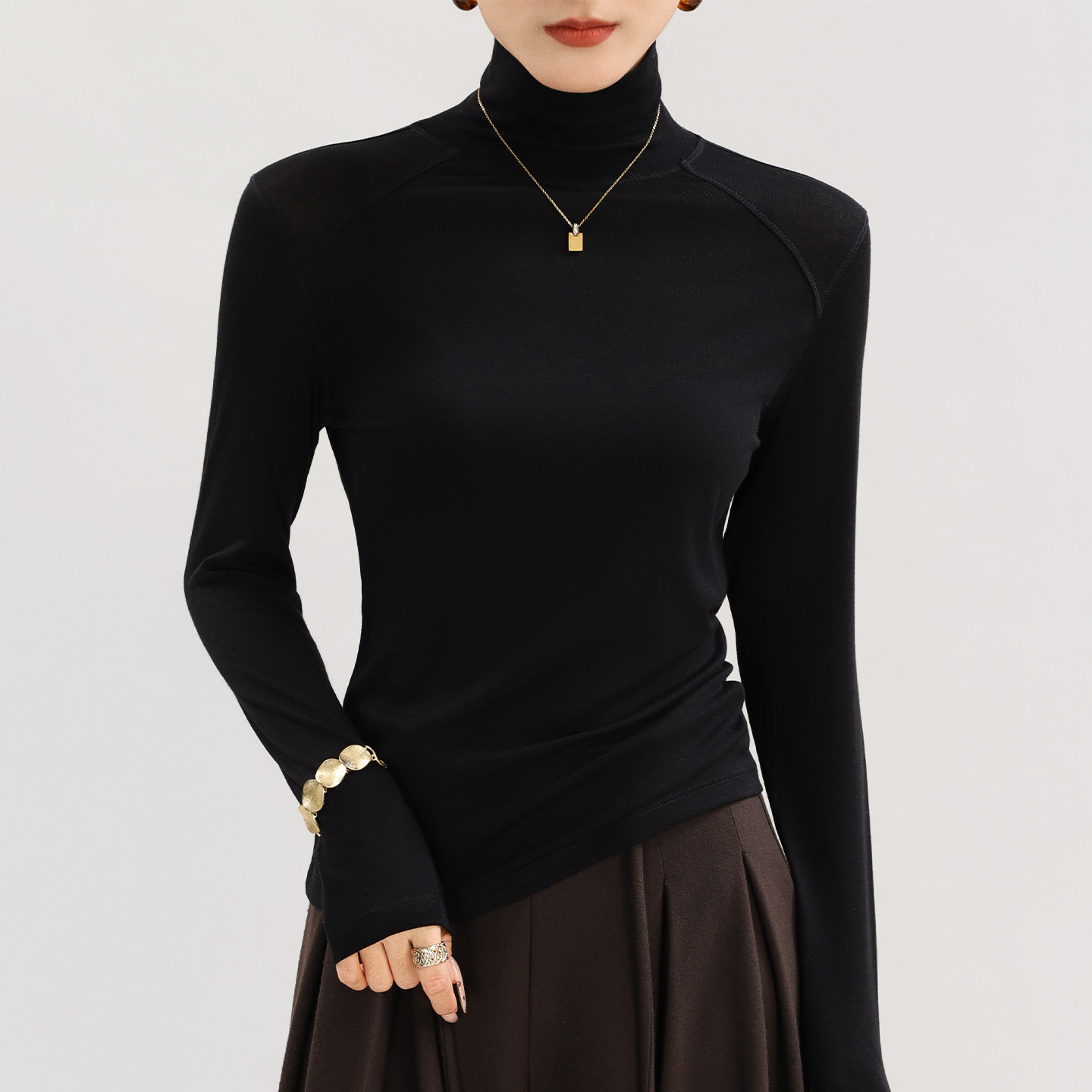 莱赛尔天丝羊毛白色高领爆款 精致薄款 修身 内搭上衣高级感 高端正品