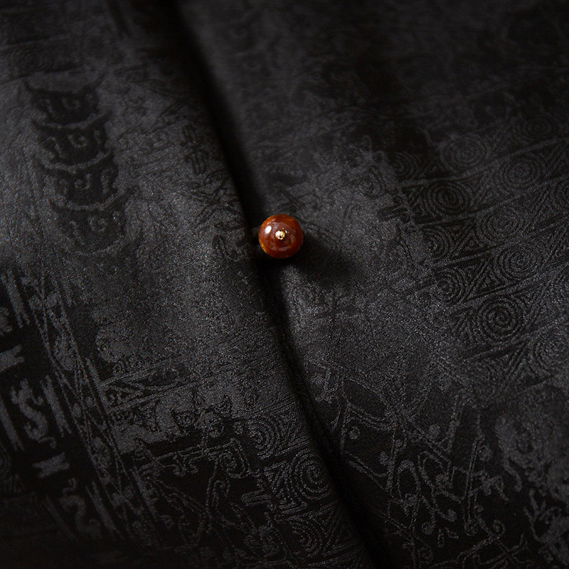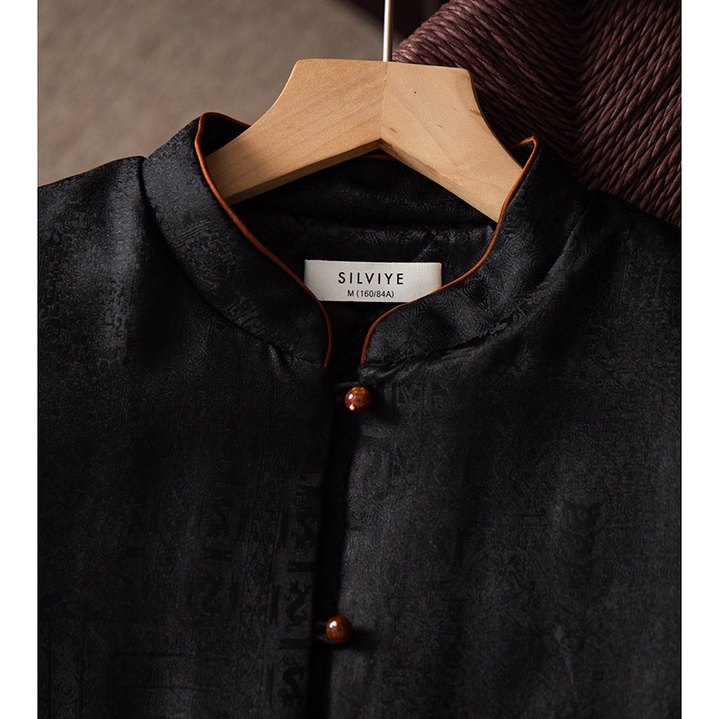 丝艺100%桑蚕丝50姆米真丝香云纱挽袖 国风冬 棉服夹棉外套女新中式