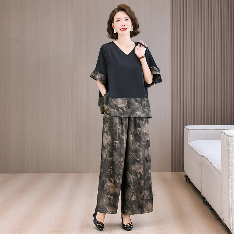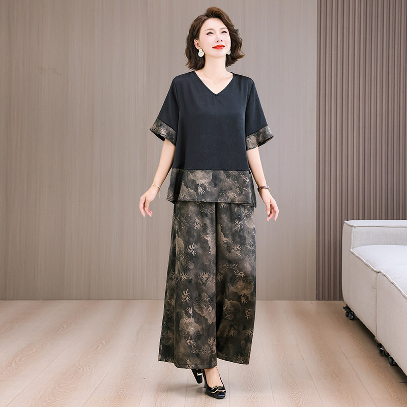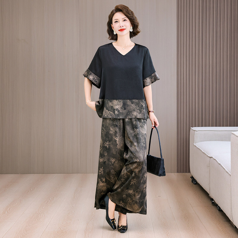 真丝香云纱上衣阔腿裤 2026宽松时尚 新款 两件套夏季 大码 显瘦妈妈装由