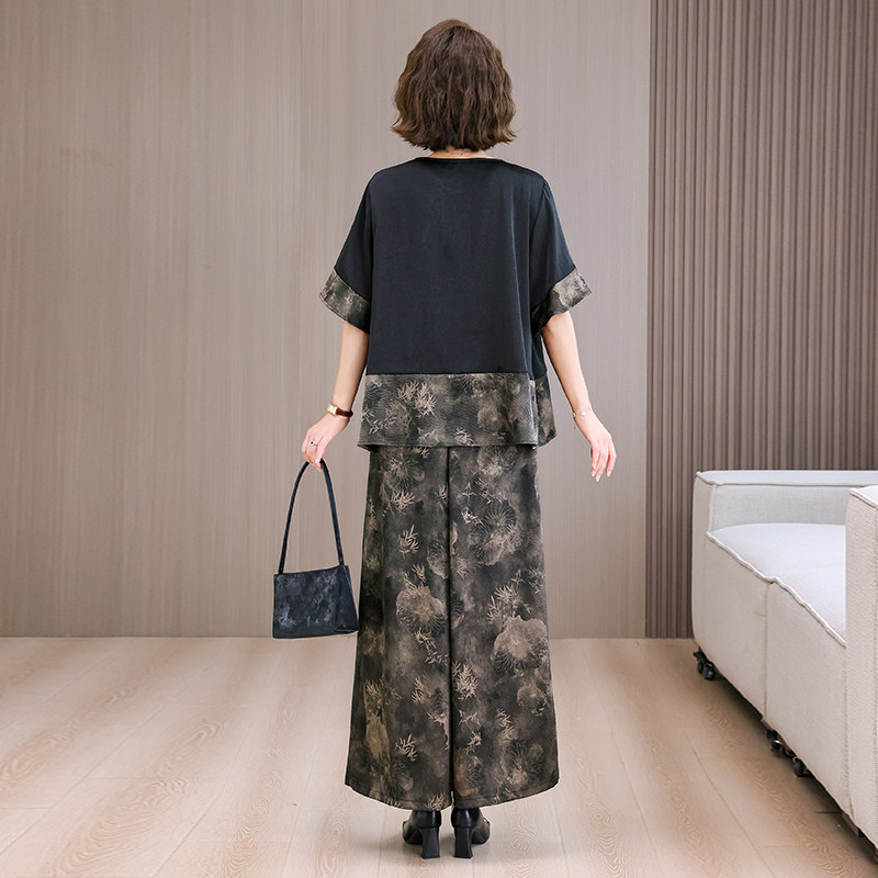 真丝香云纱上衣阔腿裤 2026宽松时尚 新款 两件套夏季 大码 显瘦妈妈装