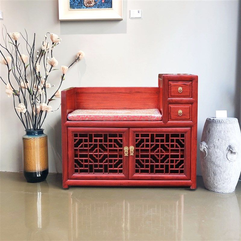 柜带换鞋 凳家用门口一体可坐围栏进门入户门外玄关定制 实木鞋 中式由