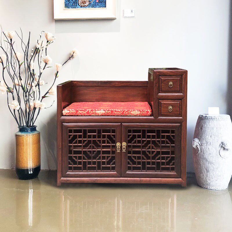 为您提供商品柜带换鞋 凳家用门口一体可坐围栏进门入户门外玄关定制 实木鞋 中式的详细介绍,
