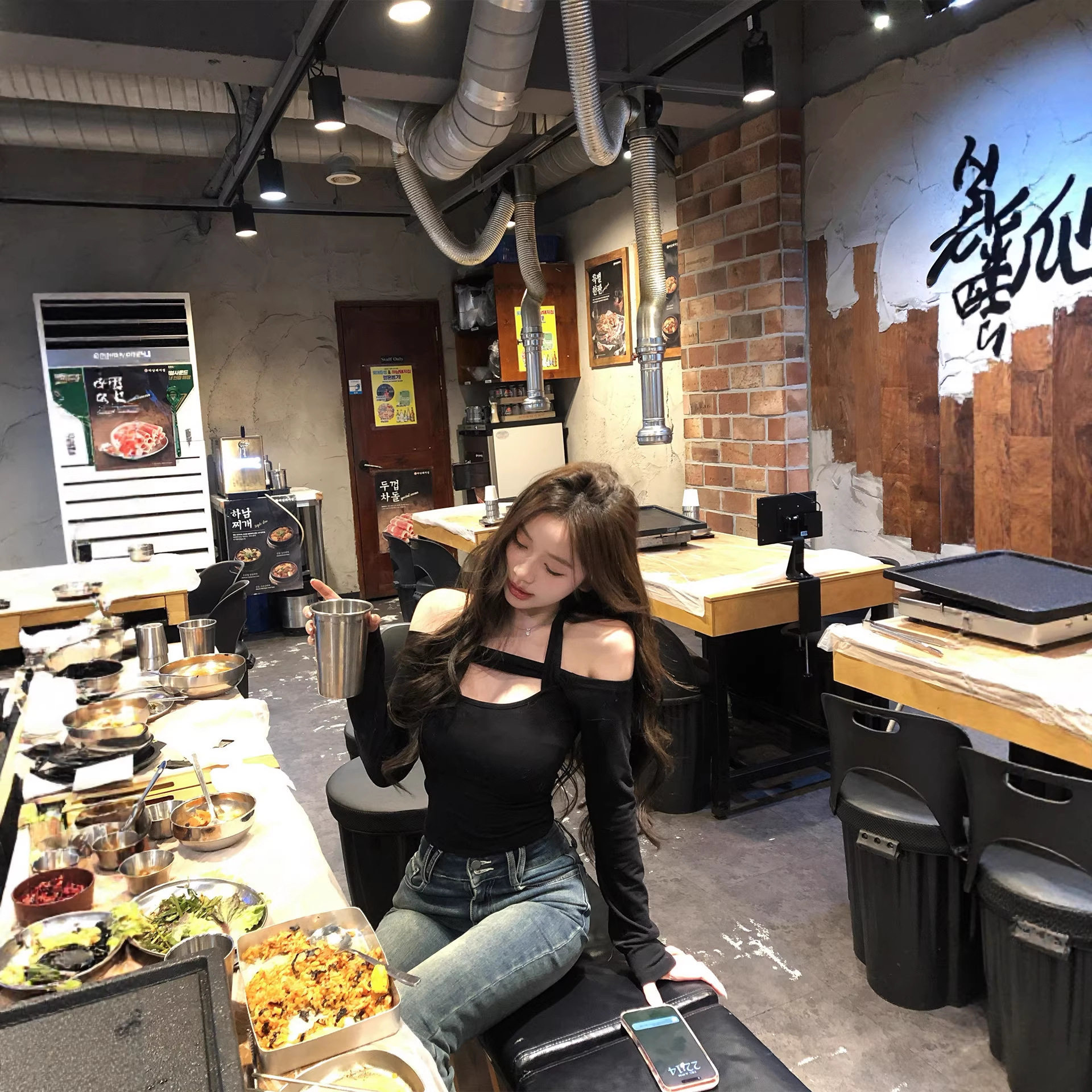 镂空一字肩挂脖长袖 打底上衣ins T恤女秋冬内搭外穿纯欲风辣妹修身由