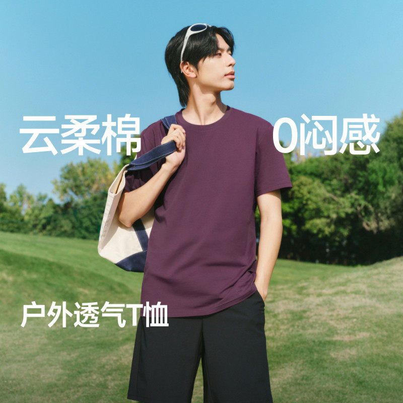 蕉下男士 上衣 透气T恤户外圆领速干云柔棉质0闷感春夏休闲运动短袖由