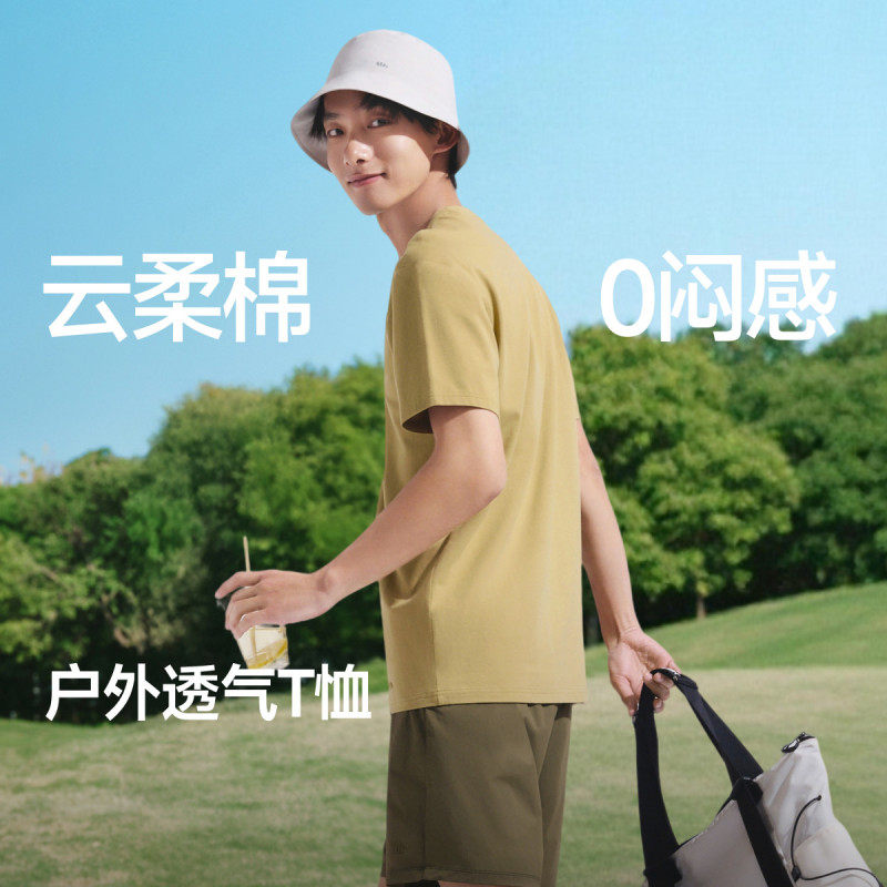 蕉下男士 上衣 透气T恤户外圆领速干云柔棉质0闷感春夏休闲运动短袖